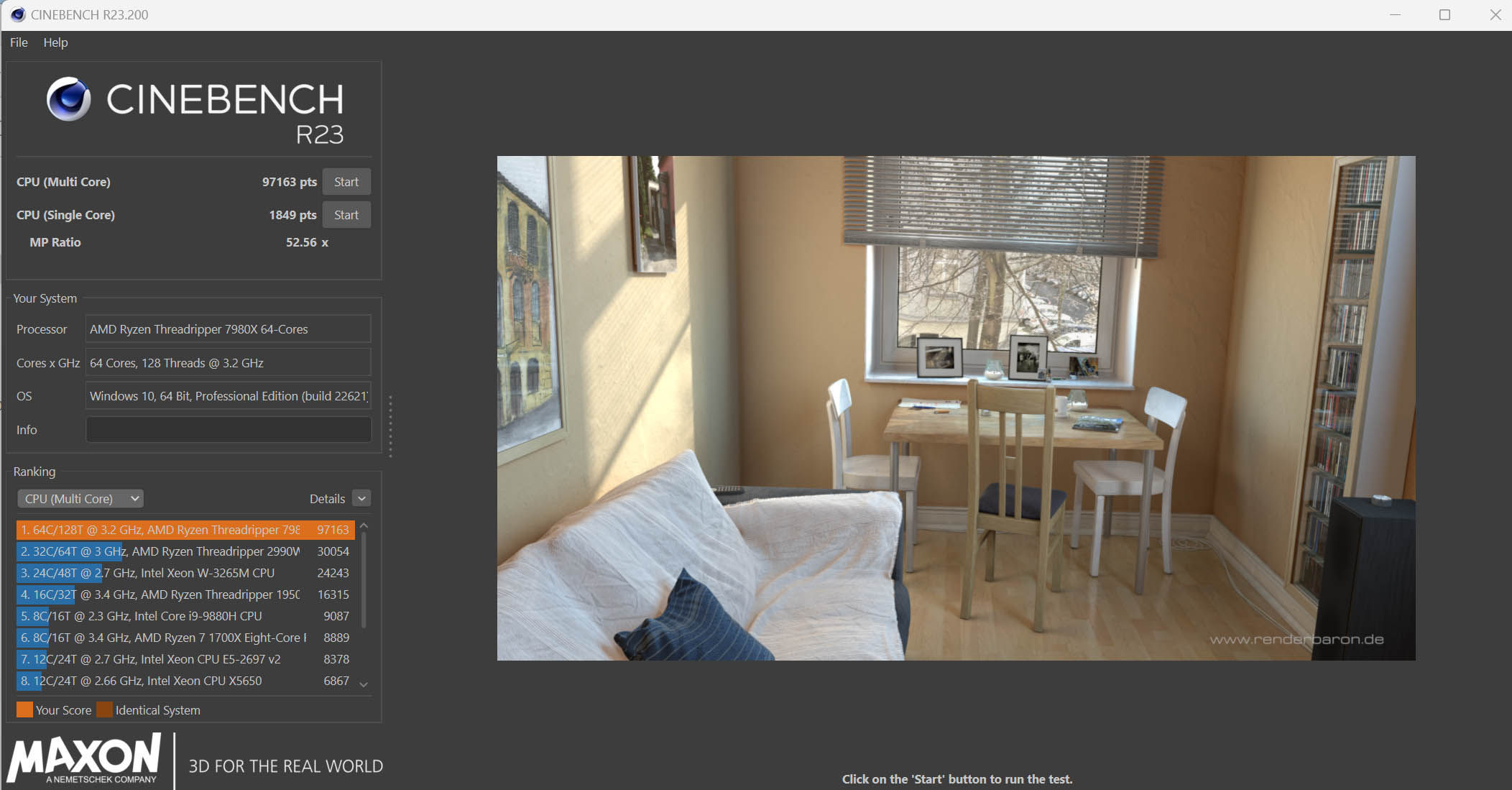 Cũng tương tự với thử nghiệm Cinebench R23 cho vi xử lý đa nhân, AMD Threadripper 7980x đạt 97,163 điểm, trong khi 7970x đạt 64,300 điểm, vượt hơn gấp rưỡi so với Intel Core i9 14900K với chỉ 41,211 điểm. Đây cũng là phép thử duy nhất mà lượng nhân thực lên đến 24 nhân của đại diện đến từ Intel có thể vượt qua được AMD Ryzen 9 7950x đôi chút.